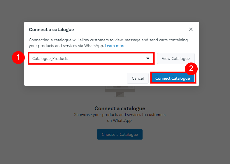 Initially, you need to create an ecommerce catalog, and subsequently, assign it to the WhatsApp Cloud API.